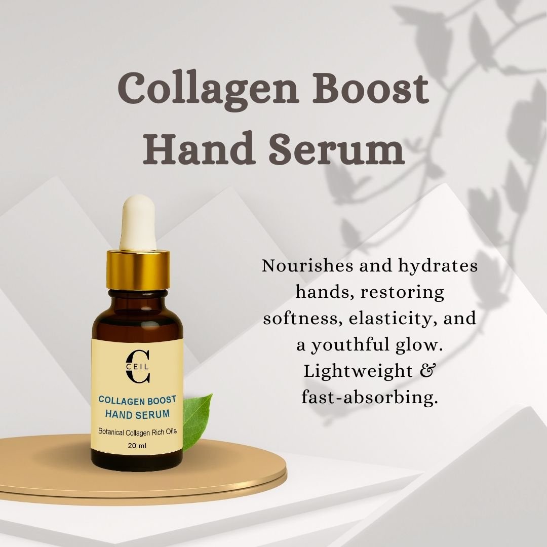 Collagen Boost Hand Serum is an advanced oil-based formula enriched with botanical collagen-rich oils to deeply nourish, repair, and protect delicate hand skin. Its lightweight yet intensive blend restores softness, improves elasticity, and combats dryness, leaving hands supple, youthful, and naturally radiant. Designed for daily use, this serum absorbs quickly without greasiness, delivering long-lasting hydration and a silky smooth finish.