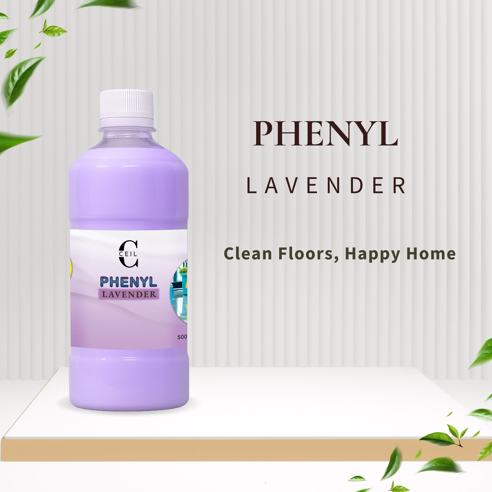 Ceil Phenyl Disinfectant (500ml) is a premium-quality cleaning solution designed to provide powerful disinfection while infusing your space with the fresh floral scent. Formulated to kill 99.9% of germs and bacteria, it ensures hygienic surfaces in every corner of your home or office. This all-purpose phenyl works efficiently on a variety of surfaces including floors and tiles. Its quick-drying, non-sticky formula guarantees clean, fragrant, and safe spaces, perfect for daily use.Proudly made by Ceil, a name synonymous with cleanliness, quality and care.
