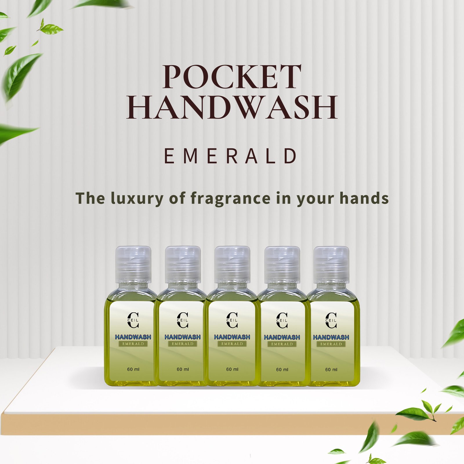 Ceil Fragrant Pocket Handwash (60ml) (Pack of 5) is your daily essential for hygiene and care. Specially designed to remove dirt and bacteria effectively, this pocket handwash also contains skin-friendly moisturizers that prevent dryness even with frequent use. Its compact and travel-friendly size makes it ideal for carrying in your bag, office desk, or while traveling, so you never compromise on cleanliness. Its elegant packaging and reliable performance reflect the premium quality Ceil is known for.